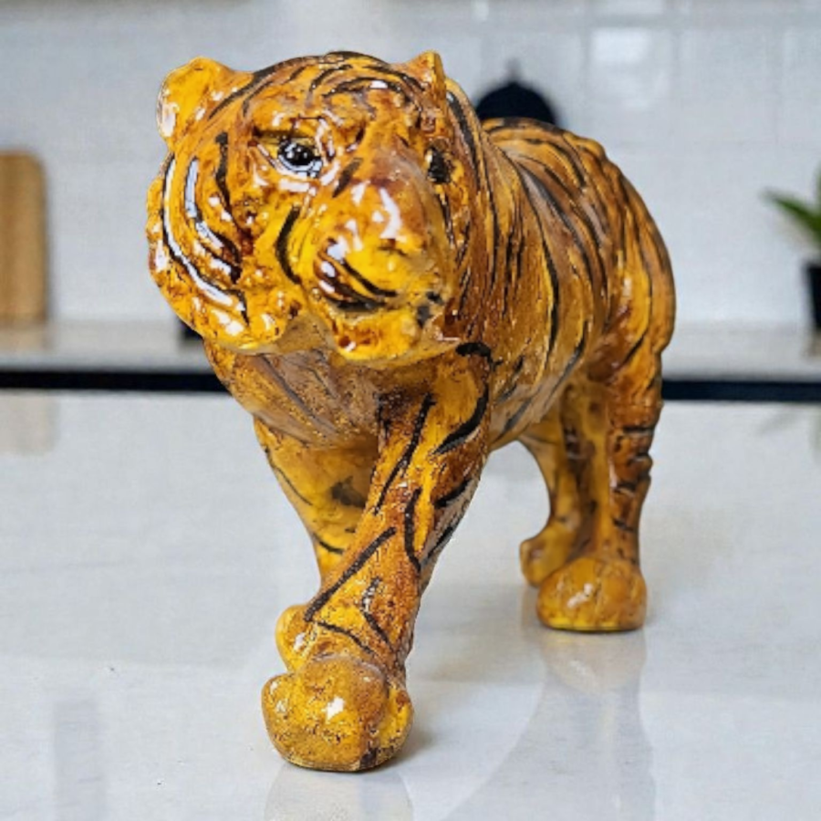 Royal Bengal Tiger Decorative Showpiece Yeh tiger showpiece 12 x 3.5 x 6 inch size me bana hua hai, jo ise table décor, shelf décor, console table ya office desk ke liye perfect banata hai