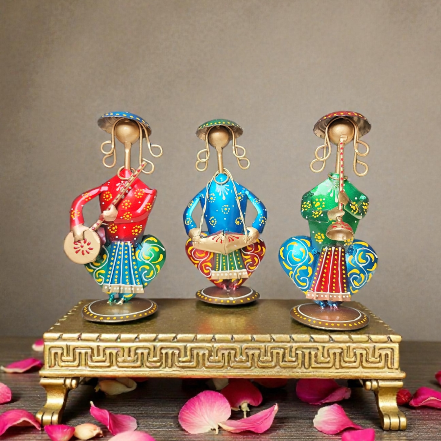 Rajasthani Folk Musician Trio Metal Showpiece (Set of 3 Pieces)