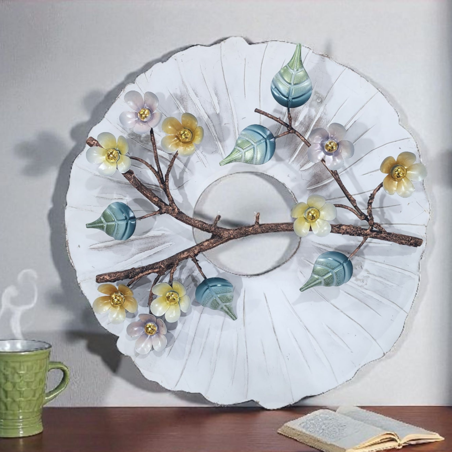 🌸Luxury Floral Circle Wall Art Handcrafted Floral Ring Wall Décor – Elegant Botanical Metal Wall Art for Living Room, Bedroom & Home Interior