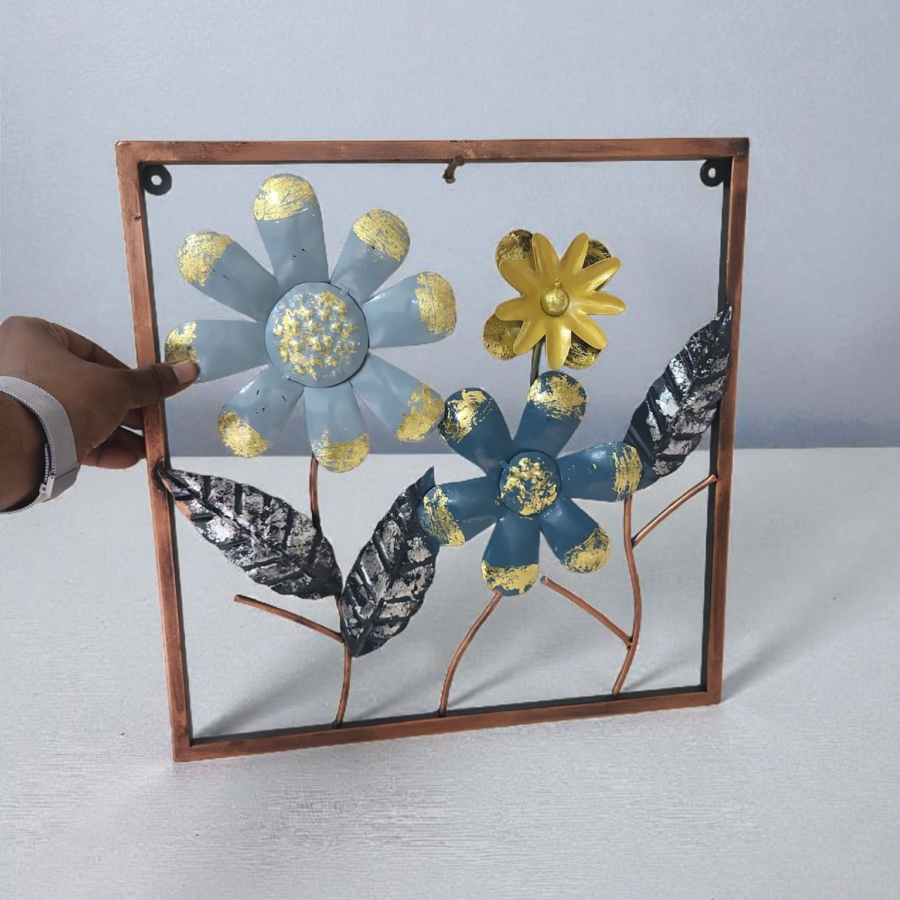 🌼 Golden Bloom Metal Wall Art blue gold wall art designer wall decor home wall decoration metal flower frame living room wall decor bedroom wall art handmade wall decor