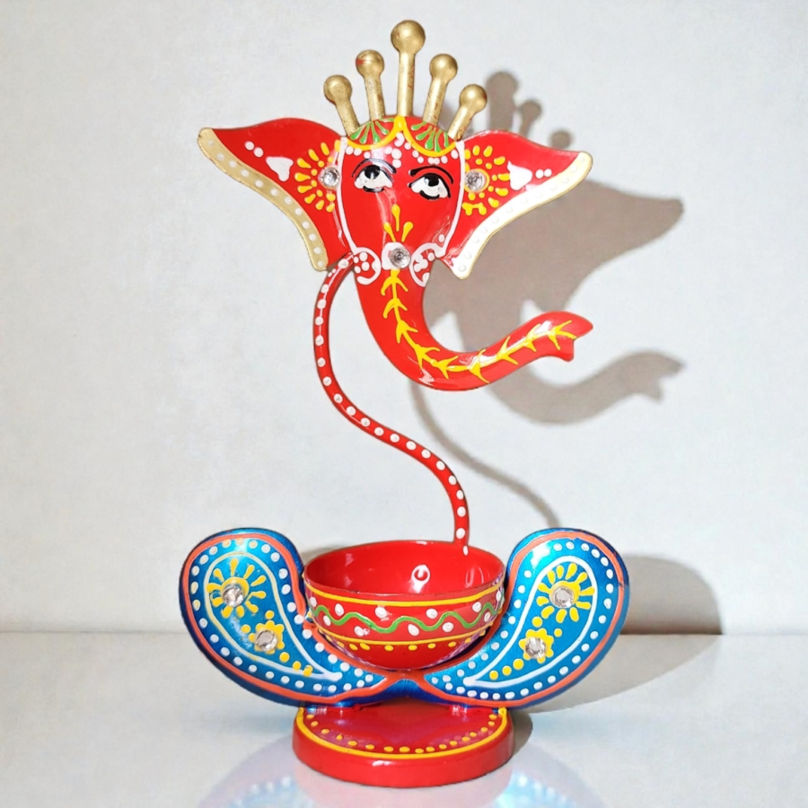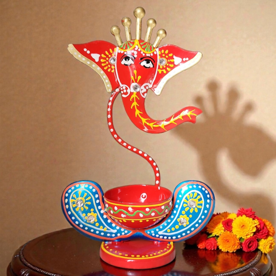 Ganpati Iron Diya Holder Table Decor aapke pooja room aur home décor ke liye ek beautiful aur auspicious decorative piece hai.
