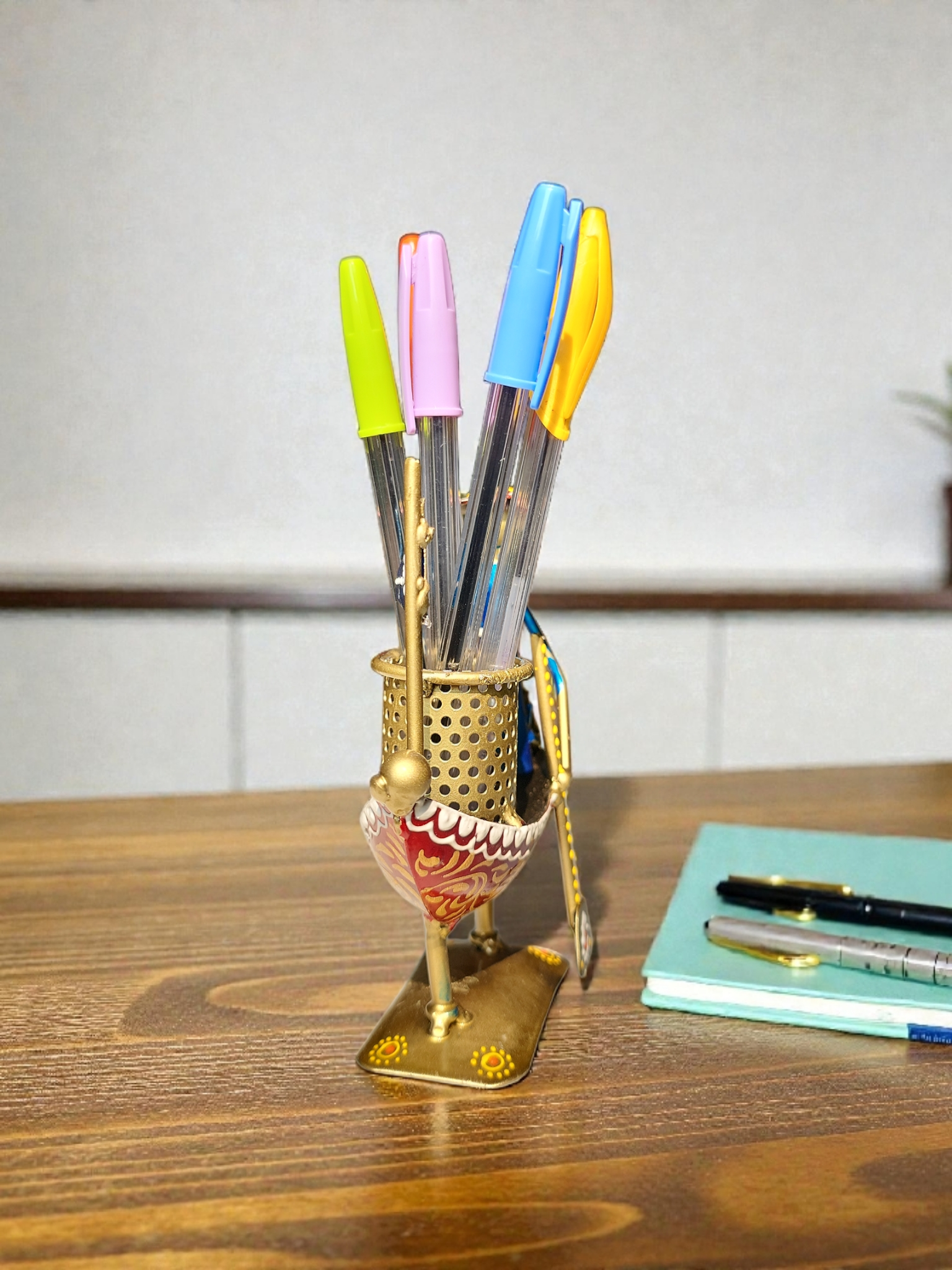 Made from durable metal and carefully handcrafted, the pen stand showcases intricate boat-inspired designs, reflecting Kerala’s rich cultural heritage. It’s perfect for holding pens, pencils, and other stationery items while enhancing your desk, study table, or office space with a unique antique accent.