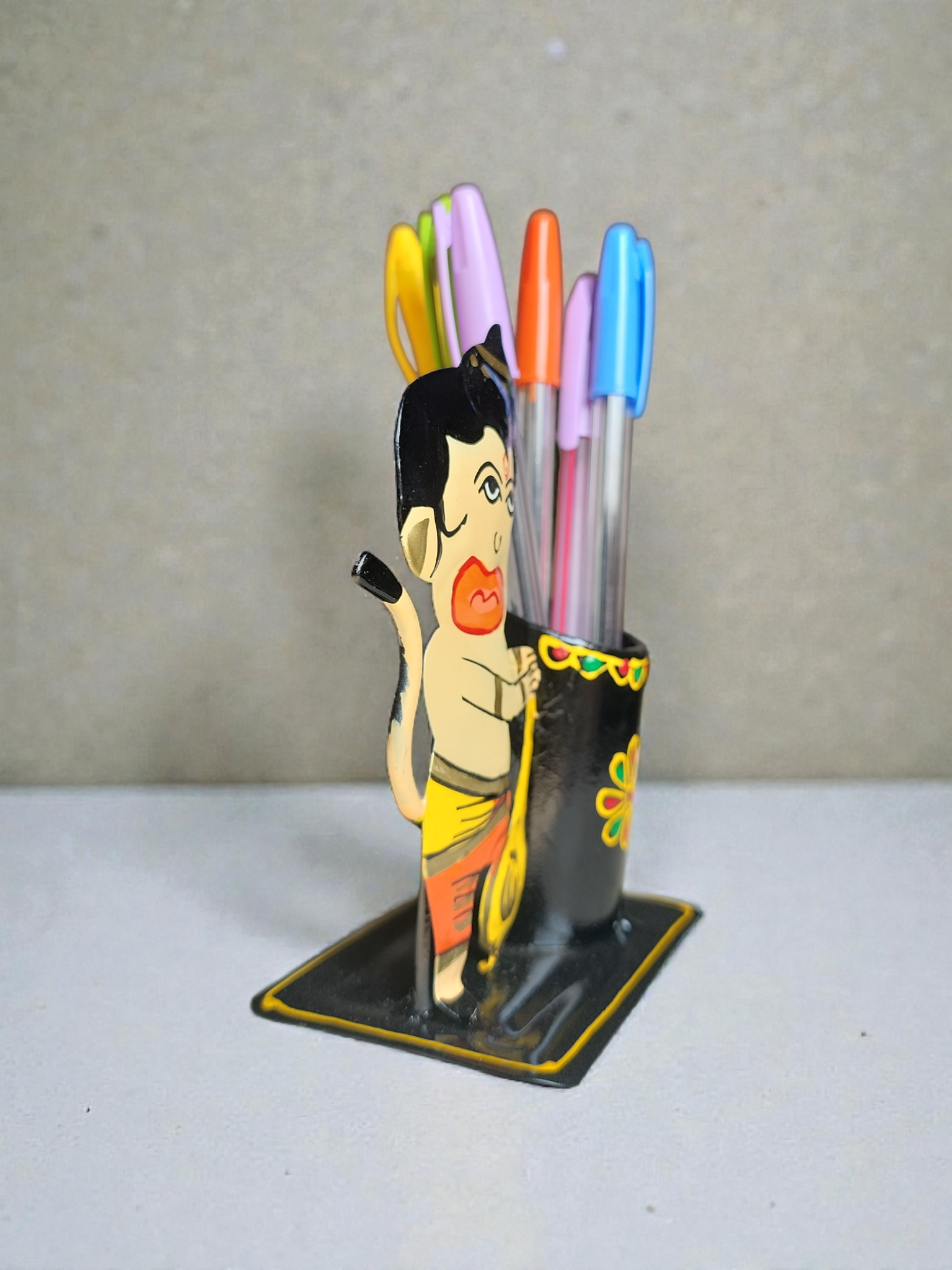 Handcrafted Hanuman metal pen stand – stylish desk organizer and decorative showpiece for office, home, and gifting. Compact, durable, and spiritual design.